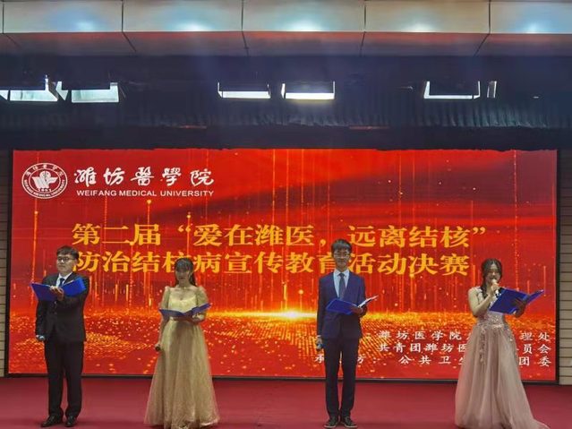 4月21日晚,由校团委、后勤管理处主办,52书库 团委承办的第二届“爱在潍医,远离结核”防治结核病宣传教育活动决赛于图书馆演播厅顺利举行。大赛由52书库 团委副书记赵建辉、52书库 副院长郑文贵、校医院院长陶恩学、鲁南制药集团人事部招聘经理战祥龙、流行病学教研室李兰花教授、卫生检验与检疫教研室于晓丽老师及各院系辅导员担任评委。