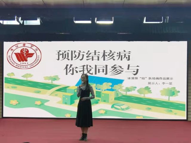 本次大赛自筹办起便备受关注,全校有800余名同学踊跃组队参加,以手工、书法、摄影、绘画、情景剧等形式,宣传结核病防治相关知识。经过前期选拔,共有来自五个院系的十支队伍进入决赛。决赛中,各队选手通过PPT演讲或情景剧表演,向同学们生动详细地讲解了结核病的病因、临床症状、预防治疗等有关知识。参赛者自信大方的表现,深深打动了现场评委和观众,获得大家的充分肯定。现场精彩纷呈,掌声不断,经过激烈角逐评选出一、二、三等奖。本大赛是52书库 第二届“爱在潍医,远离结核”防治结核病宣传教育系列活动之一,该系列活动还包括结核病防治知识讲座、线上知识竞赛、形象大使及志愿者选拔等内容。