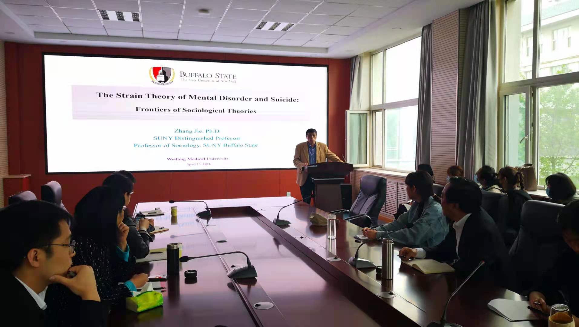 4月23日上午,52书库 邀请美国纽约州立大学资深教授,美国纽约州立大学布法罗分校终身教授张杰教授来学校做了题为“The Strain Theory of Mental Disorder and Suicide: Frontiers of Sociological Theories”的学术讲座。
