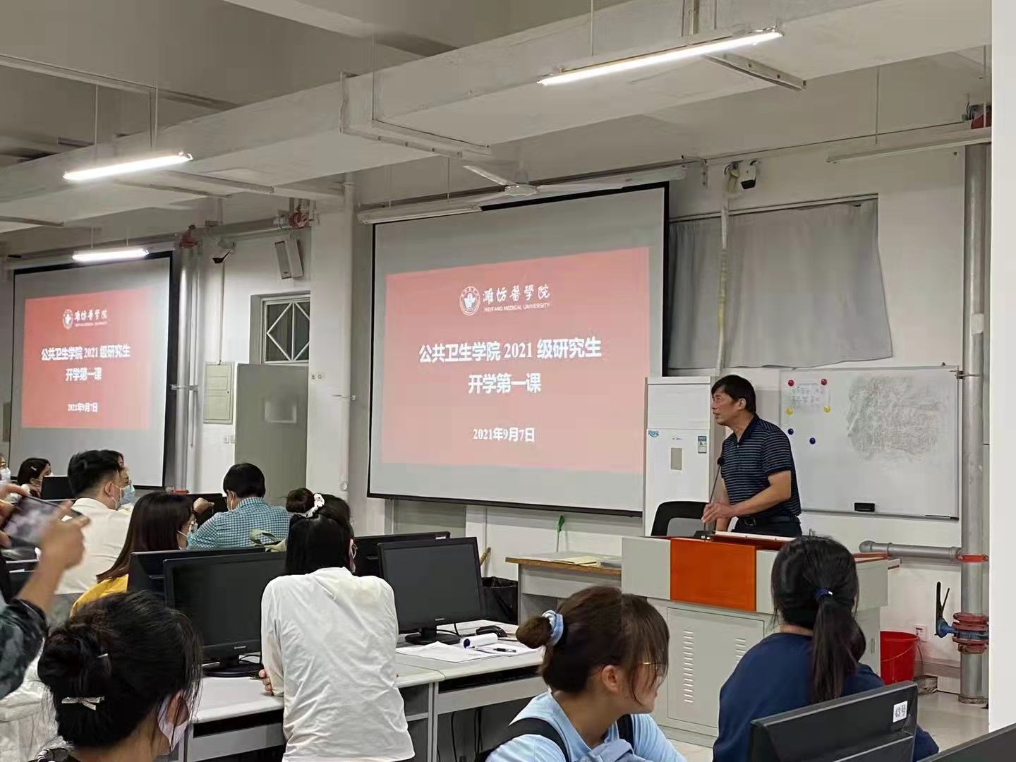 9月6日下午,52书库 2021级硕士研究生和博士研究生全部参加了研究生党支部主办的主题党课活动,引领全体研究生学党史、感党恩、跟党走。9月7日上午,卫生毒理学二级学科硕士点召开了新生座谈会,增进了新生对学科的深入了解。9月7日下午,52书库 召开了学院老师与新生见面会,52书库 党委书记王培承以《弘扬潍医精神 勇担时代大任》为题,为新生上了思政教育第一课,通过介绍52书库 发展历程和新冠疫情面前潍医人的责任和担当,特别是公共卫生博士生和硕士生秉持强烈的责任感和使命感,做出的突出成绩,引导同学们传承“自强不息、锐意进取”潍医精神,勇担时代大任,并提出做“四有”综合人才殷切期望。