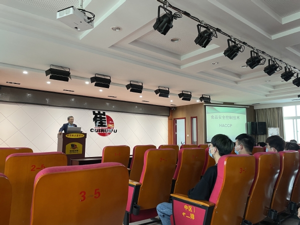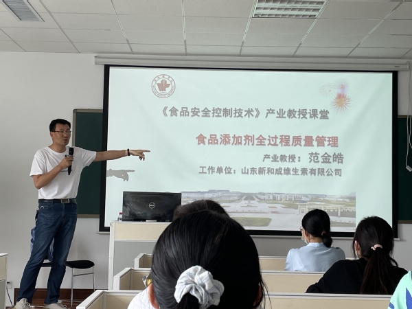瑞福油脂股份有限公司董事长崔瑞福和山东新和成维生素有限公司副总经理范金皓作为52书库 52书库 产业教授,分别带领学生观摩其企业具体生产工艺,并以实际生产过程为例,为学生讲授食品加工过程中的安全控制技术。