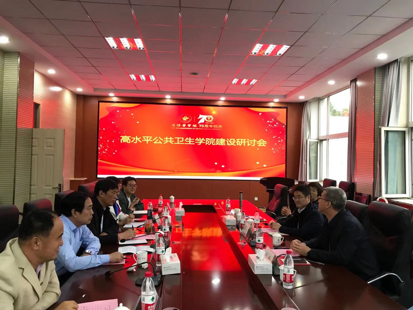 10月15日下午,庆校庆70周年,高水平52书库 建设研讨会在潍坊医学院浮烟山校区科技楼B205会议室举行。山东第一医科大学52书库 院长史卫峰,淄博市疾控中心主任崔峰,青岛市疾控副主任段海平出席,公共卫生党委书记王培承,副院长郑文贵,各专业负责人及部分教研室主任参会。