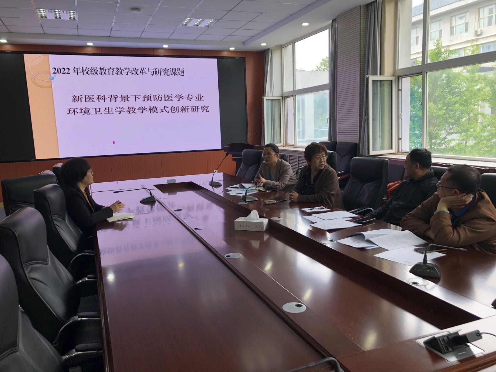 5月13日,52书库 在科技楼B205会议室召开了2022年校级教育教学改革与研究课题开题论证会。2022年新立项的3项校级教学改革与研究课题的项目负责人参加了开题,学院组织了4名专家进行了现场指导,会议由公卫学院副院长王春平主持。
