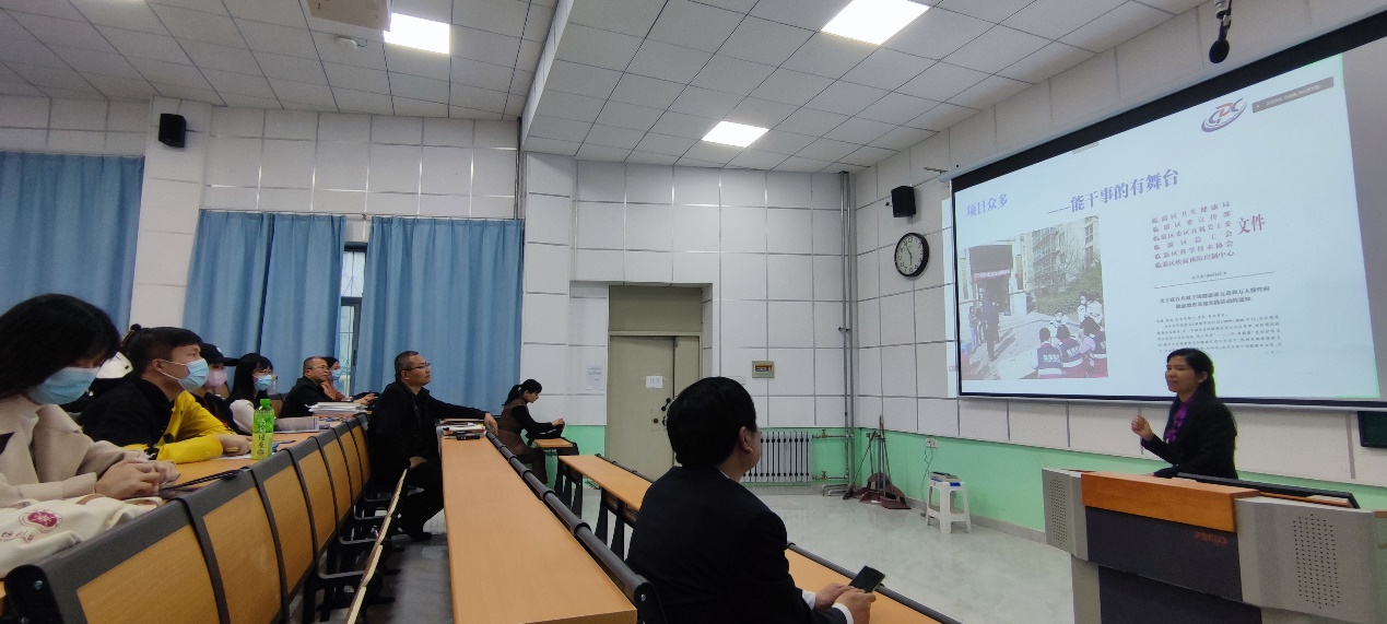 王英在虞河校区11101教室详细介绍了临淄区疾病预防控制中心的基本情况、疫情期间取得的成绩和今年拟招聘的工作岗位等。应届本科毕业生通过线上、线下方式参加了招聘宣讲会。同学们就招聘岗位和相关待遇等进行了咨询。