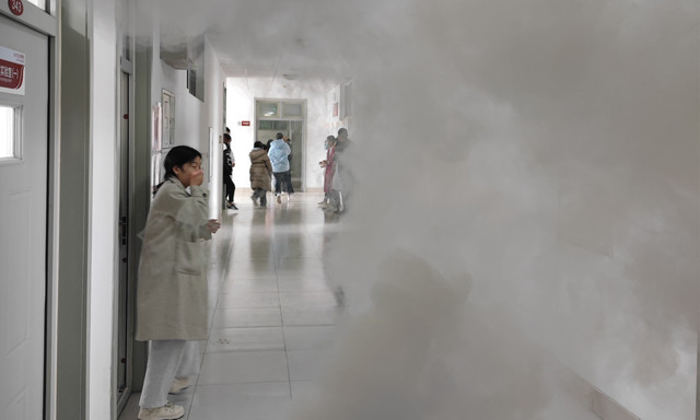 活动邀请保卫处刘汉亮一级消防工程师为大家讲授了消防安全常识,以及浓烟中的疏散、逃生、自救方法等。现场演练中,利用烟雾罐模拟火灾发生场景,全体师生在工作人员引导下,按照“捂鼻、弯腰、靠墙走”的七字逃生要领,沉着冷静、有序疏散,快速撤离到安全地带。