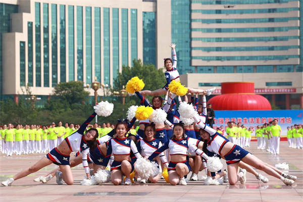 近日,由潍坊市体育局、潍坊市体育总会等单位联合举办2023年潍坊市全民健身月暨潍坊市第十三届全民健身运动会启动仪式在潍坊市人民广场举行,52书库 健美操队受邀参加并带来精彩展演。