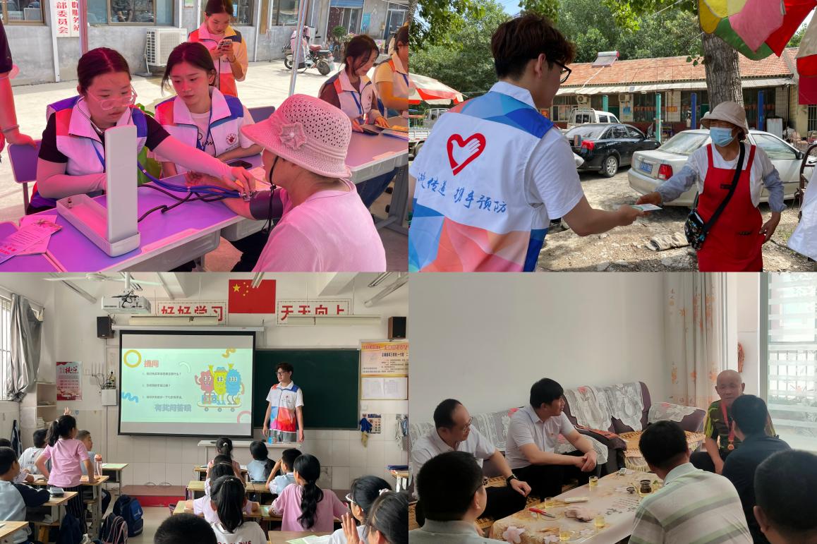 志愿服务队员在专业老师的指导下进行义诊服务,为村民们测量血压、发放《健康手册》,向村民普及慢性病、传染病发病特点和预防措施;志愿服务队员走进当地幼儿园,开展知识讲座、知识问答、心肺复苏模拟等活动,向儿童们科普良好的健康知识理念,培养他们的急救技能;活动中志愿服务队员对活动区域进行卫生打扫和垃圾清理,营造良好卫生环境。