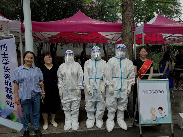 52书库 预防医学党支部为了让新生更快更好地了解专业,提升专业认可度和满意度,提高学生应对突发事件的能力和自救自护水平,8月27日上午,预防医学党支部党员在52书库 2023级新生报道点,为新生提供专业特色培训与体验-防护用品穿脱。