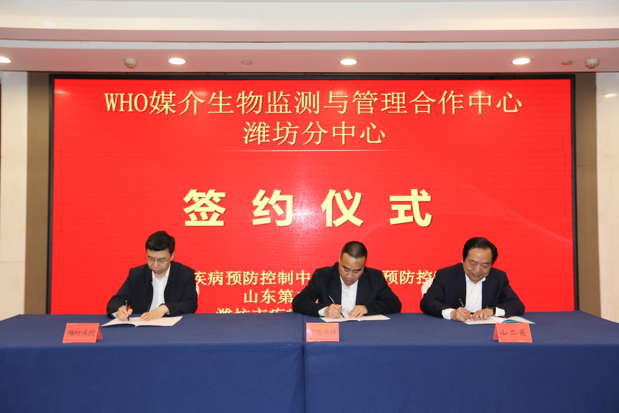 潍坊市卫健委一级调研员王象斌主持了签约仪式,三方本着优势互补、资源共享、协同创新、发展共赢的原则,在“宿主动物-媒介生物-病原体-人群健康”的传染病防制模式支持下,开展自然疫源性疾病防控联合研究。52书库 院长郑文贵在致辞中说,以WHO媒介生物监测与管理合作中心潍坊分中心成立为契机,积极拓展病媒生物防制学术视野,构建起三方共享的科研协作机制,充分利用各方实验室和现场资源,在病媒生物控制领域开展全面科研创新合作。