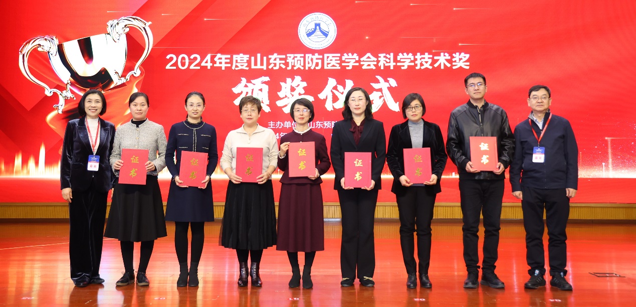 2024年度山东预防医学会科学技术奖颁奖大会暨首届青年委员会科技报告会于12月5日在济南举行。大会共评选出获奖项目30项,其中一等奖4项、二等奖8项、三等奖18项。预防医学党支部书记王春平的《群医学视角下的儿童肺炎球菌性疾病防治特征及创新型免疫策略研究》荣获二等奖。省疾控局、省科协有关领导莅临会议并为获奖项目代表颁奖。